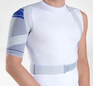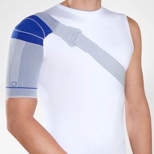 The OmoTrain S brace provides secure support for the shoulder joint and strongly promotes mobility in order to restore function. During each movement, the compression knit and a removable massage pad (Delta pad) massage the soft tissue, thereby relieving pain, and activate the musculature that stabilizes the joint. Thanks to its direct strap system, the brace participates in every movement and is extremely quick and easy to put on. It is therefore particularly suitable for use in pain therapy, for immediate care for injuries, and for protection against further injuries.